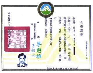 病媒防治專業技術人員合格證書